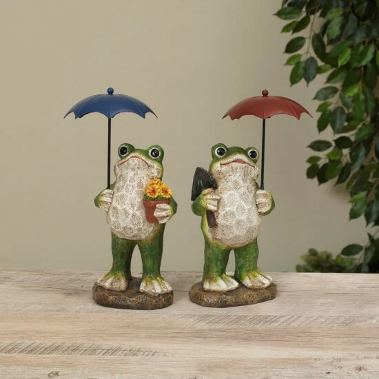 This set of 2 resin rainy day frogs holding metal umbrellas is a cute decorative accent for your garden.Each piece is large enough to place on its own or decorate together for extra cheer. Get this set from The Gerson Company for yourself or give one to your best friend to remind them how much you care about them.