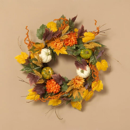 Gerson 26″ Diameter Harvest Wreath with Pumpkin & Berry Accents
