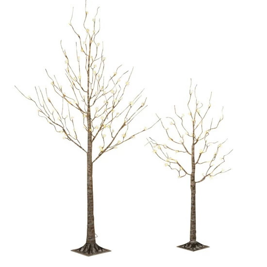 A gorgeous accent to any home, this birch tree adds light and backdrop for your seasonal dΓ©cor. The metal tree is wrapped to give it an elegant, smooth textured, variegated appearance and holds 88 warm LED lights that shine among the branches.