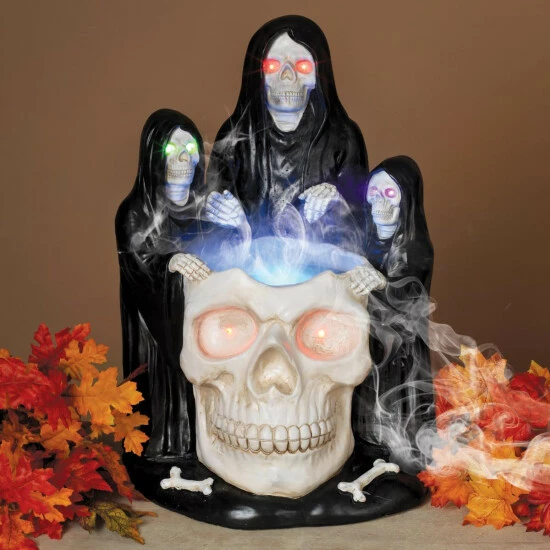 This 22.83″high Electric lighted gathering of a trio of Grim Reapers will be the highlight of your Halloween dΓ©cor. They are all gathered around a spooky smoking skull caldron. You and your family will enjoy this Halloween gem for years to come!