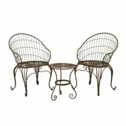 Add a touch of class to your patio, deck or yard with this vintage-look 3-piece Antique Bronze Metal Bistro Set. The arched high back chairs and round table feature ornate scrolled feet. This durable bistro set is intended for year-round use and will provide a perfect place for entertaining your family or guests.