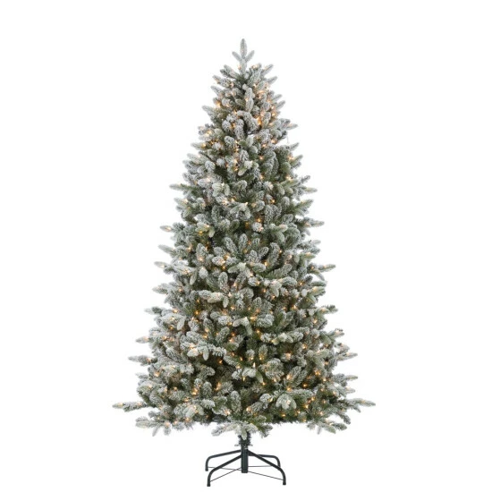 Enjoy the seasons this year with with this one-of-a-kind flocked Fir Christmas tree. This Natural Cut Swiss Mountain Fir tree is flocked, giving the appearance of freshly fallen snow in your home. Standing at 7.5-feet tall, this charming tree is pre-lit , ready for display out of the box. The 800 clear incandescent lights intertwined among 1533 fir tips. A full 55-inch base diameter gives you plenty of decorating room while still leaving plenty of room for presents from Santa. This marvelously layered tree is ready to be surrounded by presents, a photo moment, that can only be described as breath-taking.