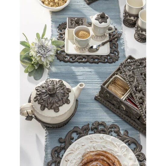 GG Collection Acanthus Leaf Sugar & Creamer Set with Sweetener Box & Tea Tray (Set of 4)