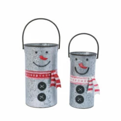 With their vintage-style appeal, these round snowman buckets are a perfect addition to your holiday dΓ©cor. Both decorative and functional, they can be used to hold holiday floral arrangements and more.