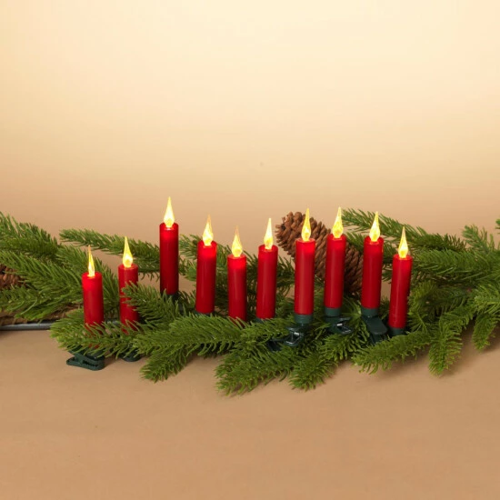 An item unique and beautiful, this set of 10 4.13″H Remote Control LED Clip on Candles are perfect to secure to your tree, garlands, or anywhere around the house. Simply point the provided remote at your candles and watch them come to life with their LED dancing flames. Each candle is powered by a AAA battery (not included), remote requires CR2032 battery, included.