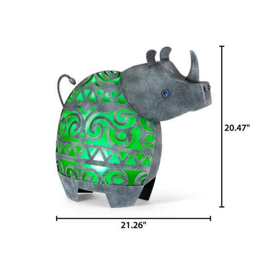 This charming Rhinoceros statue from The Gerson Company features a rustic gray finish with a softly glowing jade green lit by a long-lasting, energy efficient solar light.This elegant statue is intended for indoor or outdoor use so you can delight your friends and family on any occasion.