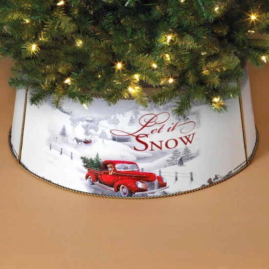 An old fashioned twist on a modern Christmas tree accessory. With this whitewashed with “Merry Christmas” hand painted-look galvanized metal tree collar you get full base coverage and can make a decorative statement. This tree collar is a chic, unfussy way to cover that clunky base.
