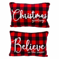 This set of 2 fabric pillows are red and black buffalo plaid with white embroidered words of the season. These are a classic design and a great addition to any dΓ©cor, especially woodland and country. In this season of bringing a touch of the outdoors in, snuggle up with a festive touch for your couch or bedroom.