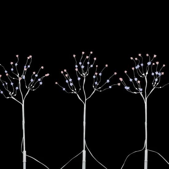 The Gerson Company 3 Connected Battery Operated 19.68″ White Branch Stakes with Multicolored Lights