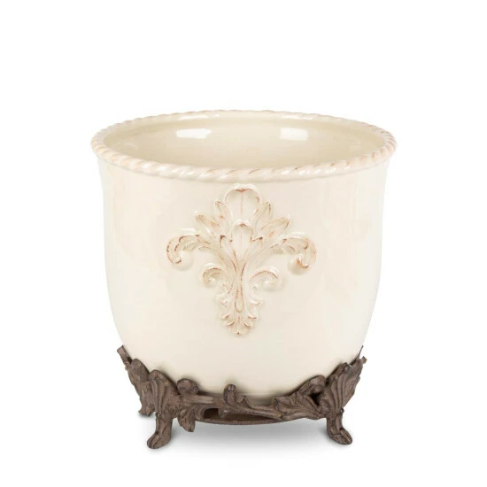 The Gerson CompanyCream Stoneware Planter on Metal Acanthus Leaf Base