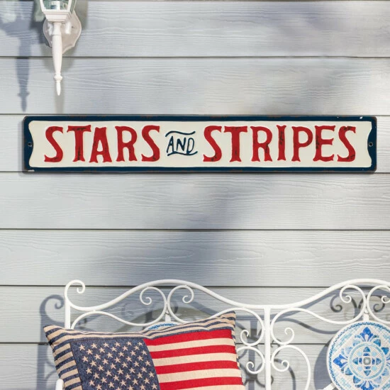 These three 22-inch long painted metal Americana signs will show off your patriotic spirit. Whether grouped together or separately, the will let everyone know the pride you take in your country. The bold colors give these signs a retro-style feeling.