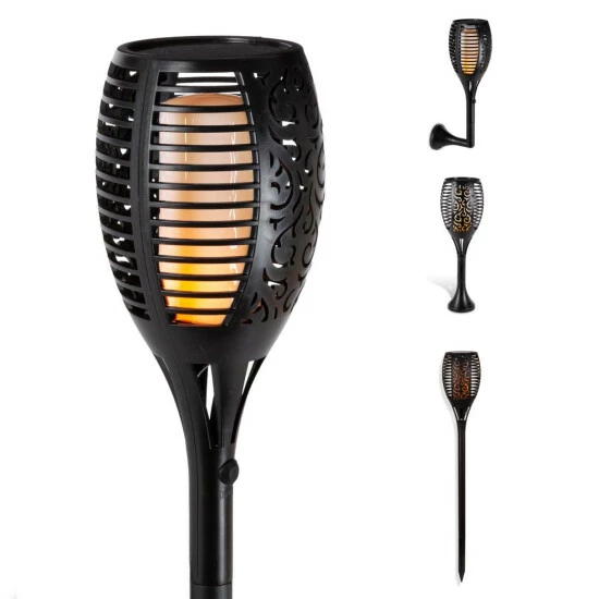 Bring the tiki torch style to your yard or porch with this black solar torch lantern. The LED FireGlow light creates a magical real-flame effect.Use the torch anywhere you want with the 3 attachment options.
